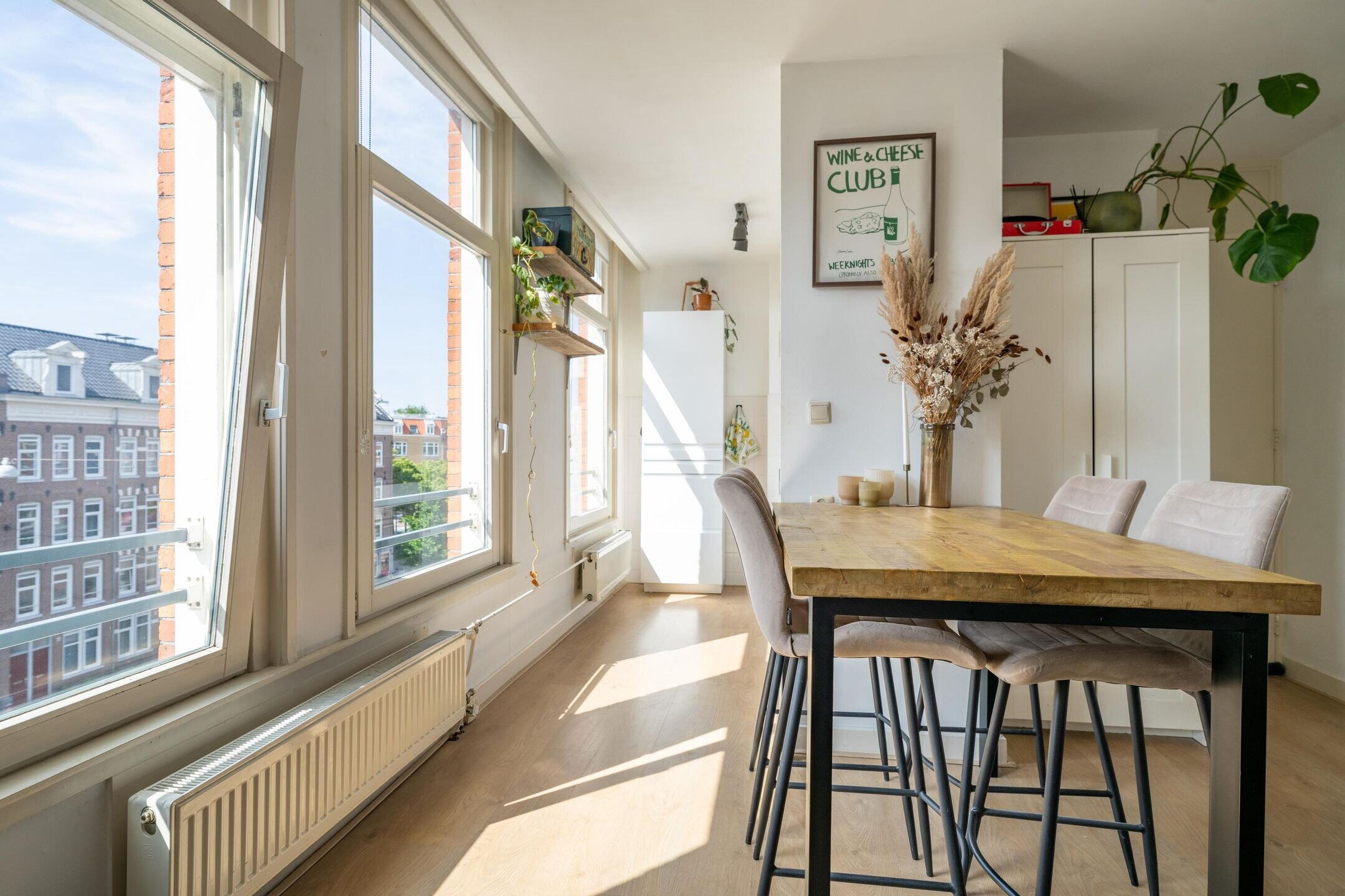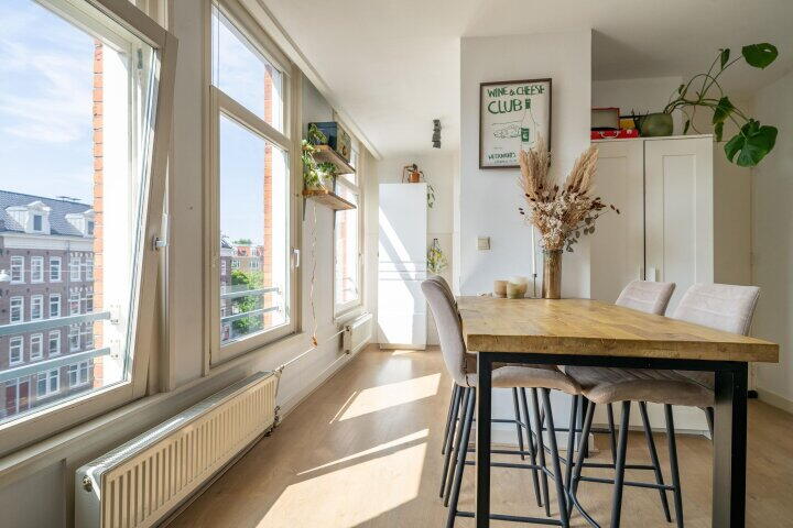 Dit gezellige appartement ligt in de levendige Frederik Hendrikbuurt, direct aan de rand van het centrum van Amsterdam. Stap je de deur uit, dan wandel je zo over het sfeervolle Hugo de Grootplein. Hier vind je een divers aanbod aan restaurants, cafés en terrassen, maar ook een ambachtelijke bakker, vishandel, slijterij, drogist en supermarkt.