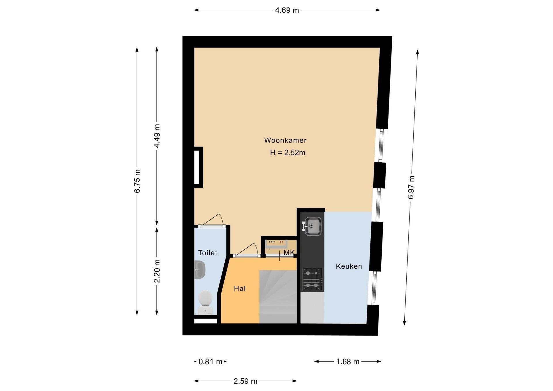 De opgegeven meetgegevens sluiten mogelijke verschillen in uitkomsten niet volledig uit, onder andere door interpretatieverschillen, afrondingen of beperkingen bij het uitvoeren van de meting. Verkoper of diens vertegenwoordiger aanvaardt geen aansprakelijkheid voor eventuele afwijkingen.
