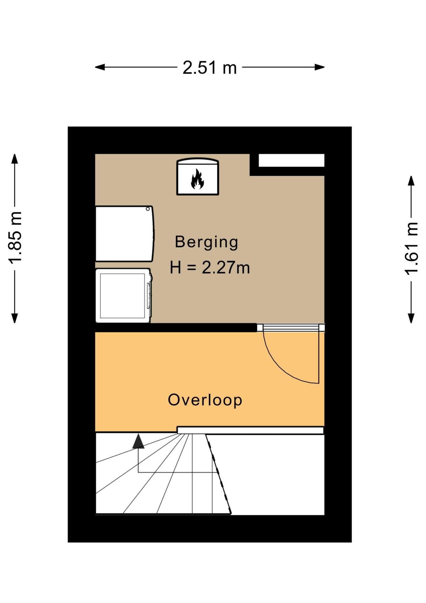 Op de vierde verdieping bevindt zich de externe berging, waar ook een aansluiting voor de wasmachine aanwezig is.